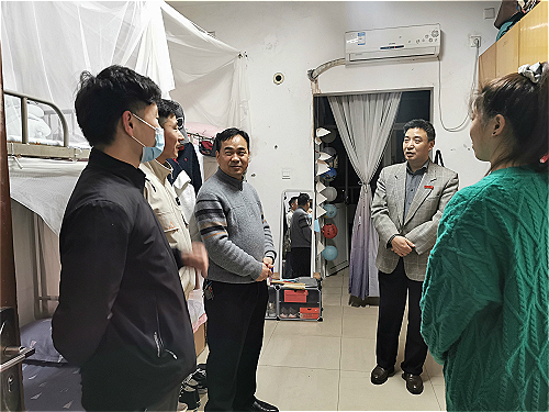 在寝室走访过程中,张宏伟和黄创霞对学生宿舍安全、卫生、设施等方面进行了全面检查,在走访过程中一再叮嘱学生要认真打扫卫生,养成良好的卫生习惯,特别叮嘱学生们,到了换季时节,要保持宿舍通风透气,加强身体锻炼,自觉营造了温馨舒适及整洁的生活、学习环境。并强调,每一位同学都要强化个人安全意识,防微杜渐,做到对自己及他人的生命安全负责。