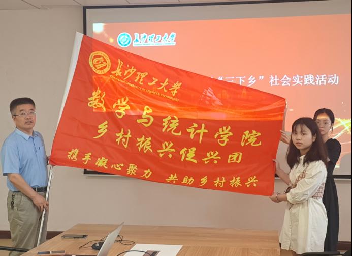 最后,马丽和仝青山向实践团队授旗,大家一起合影留念。希望大家通过这次意义非凡的“三下乡”社会实践活动能够不断提升自身的综合素质,为今后更好地服务于社会打下坚实的基础!