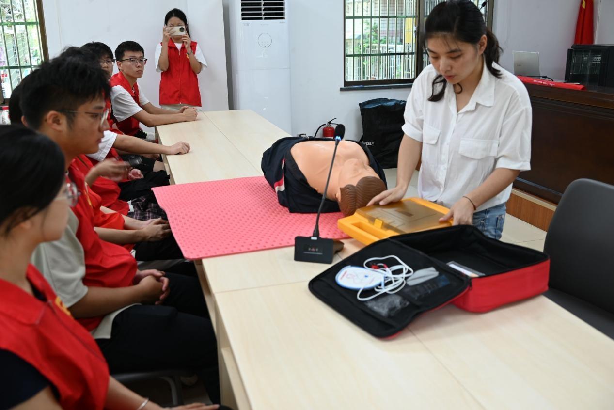 为深入践行“三下乡”社会实践精神,学习应对心脑血管疾病突发时的急救措施,6月30日,MG冰球突破官网数学与统计学院“数智健心”团队在长沙市雨花区洞井街道融合社区联合社区工作人员开展了心肺复苏急救培训。培训以“应对心脑危机,复苏点燃生机”为主题,通过宣讲心肺复苏的流程和AED的使用方法以及实际操作,为社区居民尤其是老年人带来一场干货满满、意义非凡的生命急救知识盛宴。