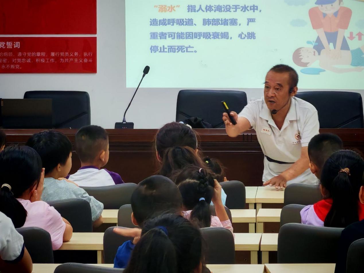 上午九点,数统学院学子提前抵达融和社区服务中心,有条不紊地布置活动场地——调试投影设备、摆放互动小礼品,为即将开始的讲座做足准备。九点半,社区小朋友们在家长陪同下完成签到,讲座正式拉开序幕。 “大家知道如果不小心掉进水里,应该怎么呼救吗?”红十字会的讲课老师以提问开篇,用生动形象的语言结合动画PPT,向孩子们讲解“落水”与“溺水”的区别,课堂气氛活跃。不仅如此,志愿者们协助红十字会讲课老师一起教小朋友们学习心肺复苏。通过实地演习,孩子们不仅掌握了防溺水核心知识,更树立了“安全第一”的防范意识。