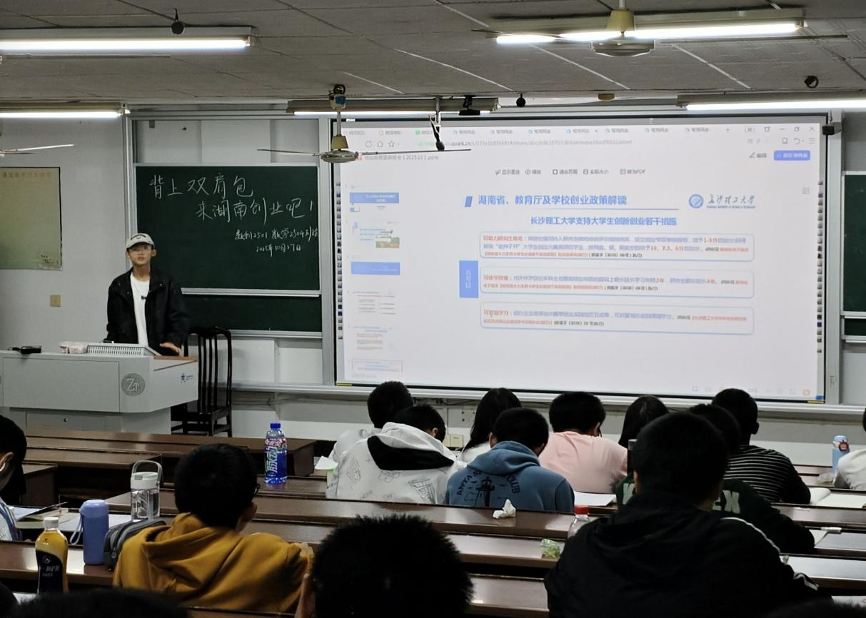 为深入贯彻《湖南省大力支持大学生创业若干政策措施》等文件精神,进一步激发大学生创新创业热情,推动创业教育深度融入人才培养全过程,培养更多具备创新精神与实践能力的高素质人才,自2025年10月23日起,我院各班级陆续组织召开了以“背上双肩包,来湖南创业吧!”为主题的班会活动。班会由各班创新创业委员主持,全体同学积极参与。