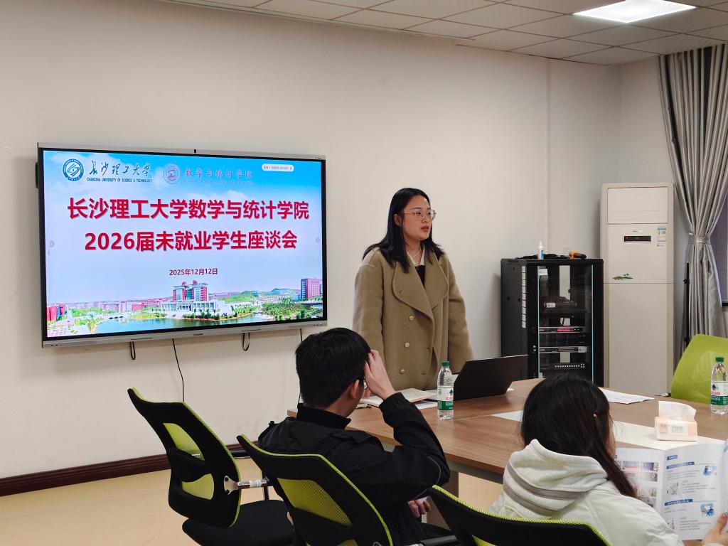 为扎实推进2026届毕业生就业工作,加强对未就业学生的关心与指导,数学与统计学院于12月12日在理科楼A212组织召开未就业学生座谈会。会议由学院就业专干彭峥主持,学院党委副书记郑忠辉、关工委常务副主任黄凤英出席会议,已就业学生代表及未就业学生共同参与。