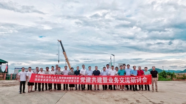 MG冰球突破官网党委副书记刘建民、土木工程学院党委书记江河、组织员柳翼、副院长韩艳、陈伏彬、曾铃、张永杰、蒋田勇、党支部书记尹平保及岩隧系党支部周德泉教授、张军教授等20多名党员专家学者与湖南省白南高速公路建设开发有限公司总经理陈咏泉、总监马云锋、纪委书记夏文兴、副经理王冠、许凌、副总工程师张震等10余名党员技术骨干参加共建活动。