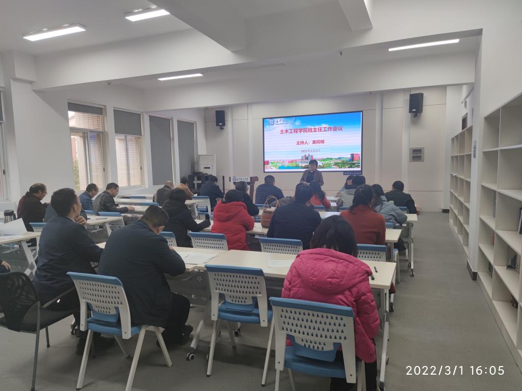 为切实提升班主任的专业素养和管理水平,加强班主任队伍建设。3月1日,土木工程学院在云塘校区工二A304召开新学期班主任会议。学院党委副书记黄阿明出席,大一和大二年级班主任、辅导员参加会议,会议由黄阿明主持。