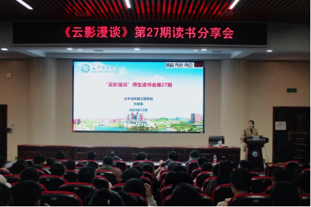 12月4日晚,学院力学系党支部在工科二号楼B302举办第27期“云影漫谈”师生读书分享会。力学系师生党支部成员、工程力学专业2025级全体本科生160余人参加了此次活动。本次读书会由力学系党支部书记郝海霞主持。
