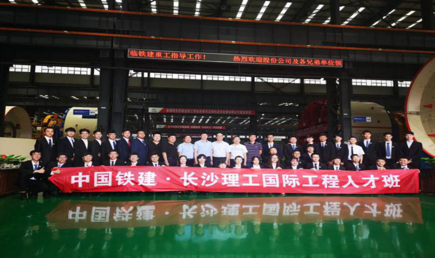 12日下午,为了加强国际班学员对集团公司的了解,增进学员们与集团公司之间的联系,拓展学员们的视野,在学校与集团公司有关领导的带领下,中国铁建·MG冰球突破官网第一届国际工程人才班全体学员与各学院2016级学生代表参观了中国铁建股份有限公司旗下位于长沙的中国铁建重工集团有限公司。在铁建重工领导的带领下,同学们参观了铁建重工的车间,了解铁建重工的发展历程、业务范围与企业文化。通过这次参观,同学们见识到了什么是真正的大国重器,并为能够加入到中国铁建感到自豪。
