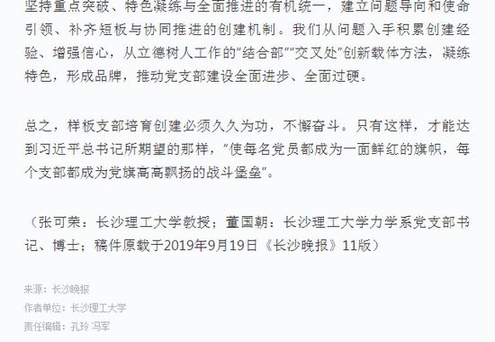 (张可荣:MG冰球突破官网教授;董国朝:MG冰球突破官网力学系党支部书记、博士;稿件原载于2019年9月19日《长沙晚报》11版)