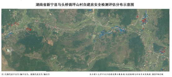(新宁县马头桥镇坪山村自建房安全检测评估分布示意图)