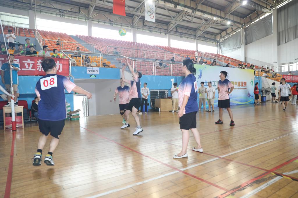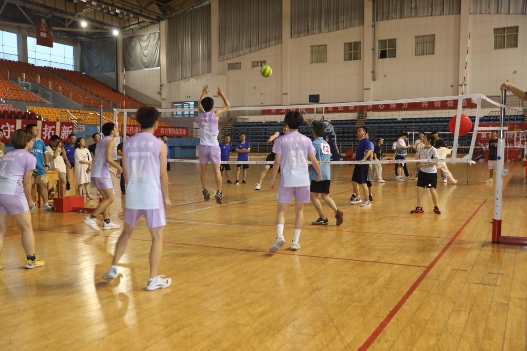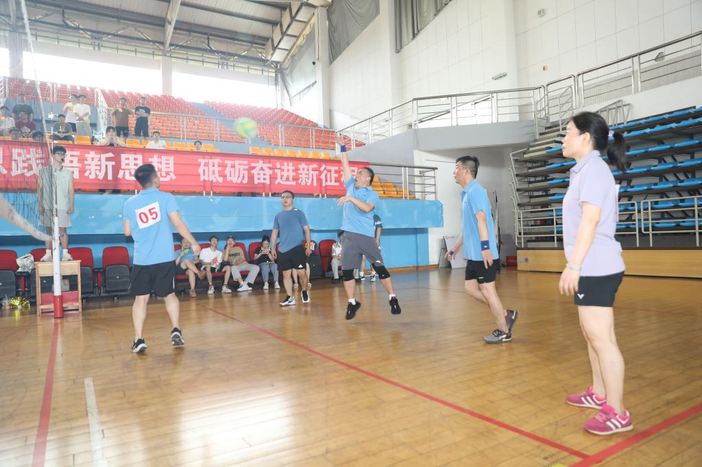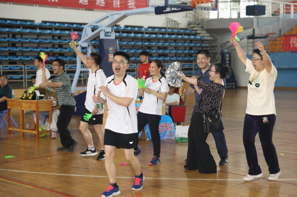 在智建对实验、行政对桥梁的首场小组赛中,场上老师们激情挥拍、团结一心,很快便将全院师生带入到比赛的紧张而又欢快的氛围中来。从小组赛到淘汰赛,进行了为时2个多小时共计9场比赛,场场亮点“爆燃”,江河书记的惊险扑救、王磊院长的飞身暴扣、桥梁系老师们的众志成城、建工系老师们的奋勇争先、岩隧系老师们的齐心协力、智建系老师们拼搏奋进、力学系老师们的团结协作、实验室老师们的坚毅执着,赢得了现场师生的阵阵欢呼。在紧张而激烈淘汰赛和冠亚季军争夺赛中,幸福又欢快的呐喊此起彼伏,仿佛不是几支队伍在比赛,而是整个学院师生在拼搏、在较劲。经历3个多小时的激战,最终行政系、实验中心与桥梁系力压群雄,夺得三甲。精彩纷呈的赛事背后凝结着土木师生对美好生活的向往,对健康快乐的追求。长期以来师生刻苦训练基本功,不断演练新阵容和积极挑战强对手的奋斗完美诠释了土木人勇于争先、敢打敢拼的精神。