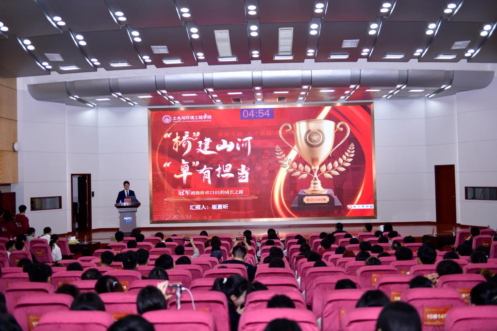 “冠军班级”桥卓2101班是一个冠军云集的班级,由院长王磊老师担任班主任,在国家级、省级、校级竞赛中,荣获全国结构设计大赛总冠军等11项冠军。班级共有成员30人,6人被推免至同济大学、东南大学等985高校,连续四年绩点专业第一,考研上线率53%,获国家级奖项和荣誉58项。班级成员连续3年参与红色桥梁实践,获湖南省志愿服务大赛银奖等集体荣誉。班级主动服务师生,担任院学生会轮值主席、党支部副书记、国旗班旗手等学生干部比例达100%。