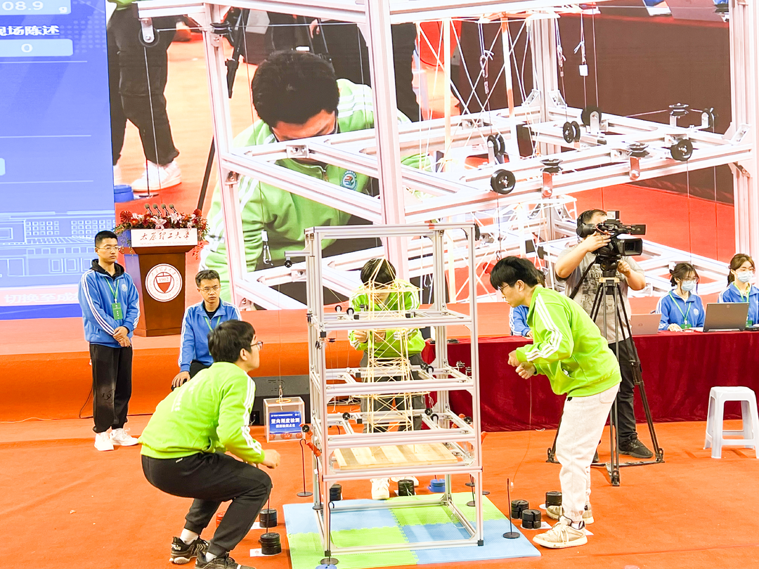 MG冰球突破官网土木学院参赛队正在进行模型加载测试