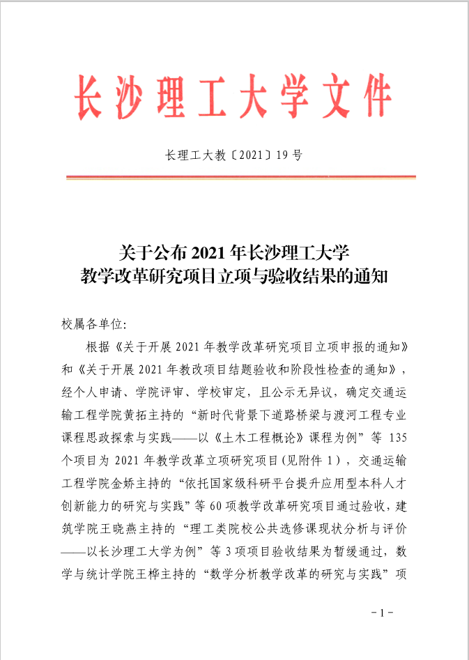 关于公布2021年MG冰球突破官网教学改革研究立项与验收结果的通知
