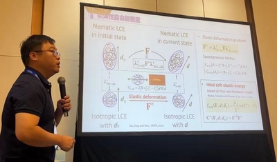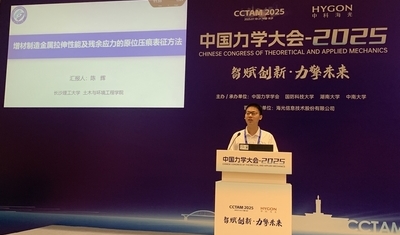 我院9位力学领域教师参加了本次会议,其中在材料与结构之力学性能测试分会场,陈辉副教授做了题为“增材制造金属拉伸性能及残余应力的原位压痕表征方法”的分会报告;在多体动力学与控制专题研讨会场,马佳副教授做了“基于自优化神经网络的弹炮接触碰撞动力学建模研究”的专题报告;在固体变形与本构理论专题研讨会场,徐艺伟老师做了“介电液晶弹性体各向异性力-电耦合本构行为”的专题报告;在智能材料与超材料力学专题研讨会场,赖安迪老师做了“PT对称板的奇异点与扰动动力响应”的专题报告;在实验力学新方法及前沿应用专题研讨会场,董帅副教授做了“基于深度学习的自标定三维数字图像相关方法”的专题报告;在多相流体力学专题研讨会场,王响军老师和石理新老师分别做了“一种定量表征粒子局部富集现象的新型方法——拟引力法”与“边界约束控制着剪切增稠悬浮液中动力学模式的形成”的专题报告。
