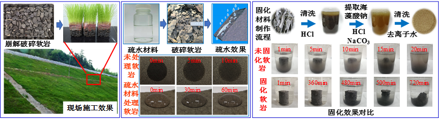 利用废弃材料制备绿色环保的边坡防护材料,使裂隙软岩强度提高30%以上,边坡防渗效果提高50%以上,植被覆盖率提高20%以上 |