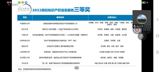 高校知识产权信息服务中心联盟(AUIPIS)2022年年会暨第五届学术研讨会于11月23日-25日在福州召开。会议公布了“2022高校知识产权信息服务”优秀案例评选结果,MG冰球官网报送的案例《面向科研团队需求、融合线上线下的知识产权信息素养教育》荣获三等奖。据了解,我省仅两所高校(另一所为中南大学)获得此项奖项。