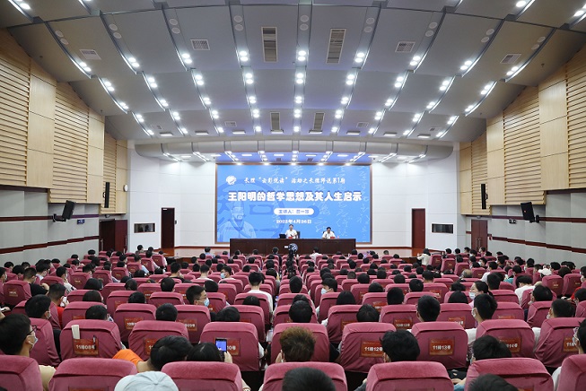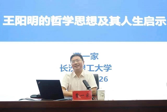 曹一家王阳明的传奇人生展开叙述,认为王阳明“知行合一”、“致良知”、“四句教”思想观点从明代闪耀至今。讲座中他旁征博引,用生动风趣的语言分析了阳明心学的思想体系、当代价值和核心理念。心学四句教:“无善无恶心之体,有善有恶意之动。知善知恶是良知,为善去恶是格物”,这是王阳明全部思想的高度概括和总结。重点阐述了心学精髓“心即理”、“事上练”如何达到知行合一的境界。关于如何学习心学,曹一家提出立志、勤学、改过、责善的独特见解,并总结出三点人生启示:一是要树立远大的理想,建立由内而外的人生,把梦想交给自己;二是凡事从良知出发,去实践中锻炼,练就过硬本领;三是行动才能创造智慧。最后他根据自己的亲身经历勉励青年学子感恩生命中所遇到的一切,接受现实,冲破障碍,保持专注,努力工作,赢得奇迹人生。即便是身处迷雾,也别忘了提升自己的人格、品德,努力成为“三真”(真爱国、真感恩、真本领)人才。