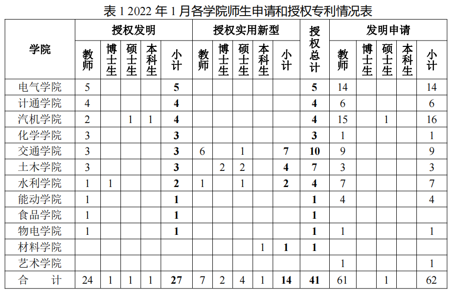 检索各国官方公开/公告的专利数据,筛选出MG冰球官网作为第一申请人或者第一专利权人的专利,结合MG冰球官网人事数据、研究生和本科生数据,按第一发明人所属学院和身份统计各专利成果,得到MG冰球官网各学院教师和学生申请和授权专利的情况见表1所示。
