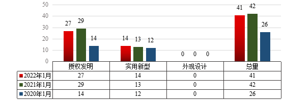 1 20221月MG冰球官网专利申请类型分布及近两年同期申请情况