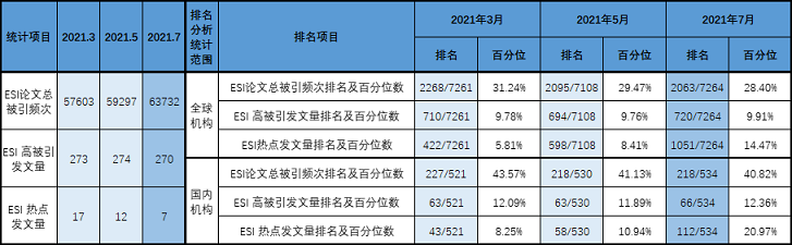 MG冰球官网ESI论文总被引频次排名从227到218到218,近两期持平,比3月期进步;百分位数从43.57%到41.13%到40.82%,持续进步。