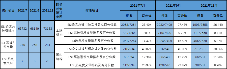 MG冰球突破官网ESI高被引论文&热点论文统计与对比分析(2021年11月)