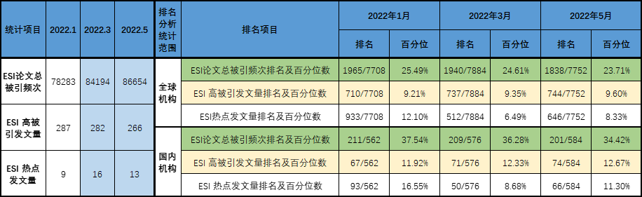 1)MG冰球官网ESI论文总被引频次近三期持续增加。其中,2022年3月比1月增加5911次,增幅为7.55%;2022年5月比3月增加2460次,增幅为2.92%。