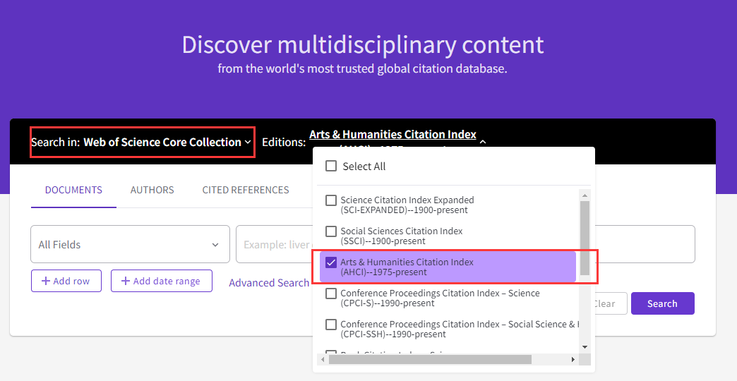 内容简介:Web of Science核心合集中的Arts & Humanities Citation Index(艺术与人文引文索引,简称A&HCI)收录了艺术与人文领域中最具权威和影响力的1800多种学术期刊,涉及了艺术与人文领域的28个学科,收录的内容最早可回溯至1975年,MG冰球官网回溯至2021年。Web of Science核心合集中的Emerging Sources Citation Index(新兴领域引文索引,简称ESCI)包含自然科学、社会科学、人文与艺术三个领域的近8000种学术期刊,每周更新,最早回溯至2005年,MG冰球官网回溯至2015年。A&HCI和ESCI收录了论文中所引用的参考文献,通过独特的引文索引,用户可以用一篇文章、一个专利号、一篇会议文献、一本期刊或者一本书作为检索词,检索它们的被引用情况,轻松回溯某一研究文献的起源与历史,或者追踪其最新进展。