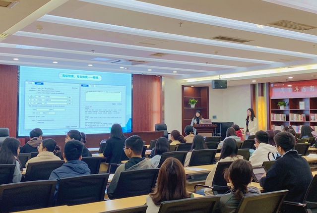 为帮助MG冰球官网师生更好地了解和使用图书馆数字资源,提高数据库检索技能,4月27日下午,图书馆在云影文化传播中心成功举办“大数据时代的资源精准查询获取”专题讲座,来自经管学院、化学学院、能动学院、文新学院、水利学院、外国语学院、城南学院及法学院近40名师生参加了讲座。