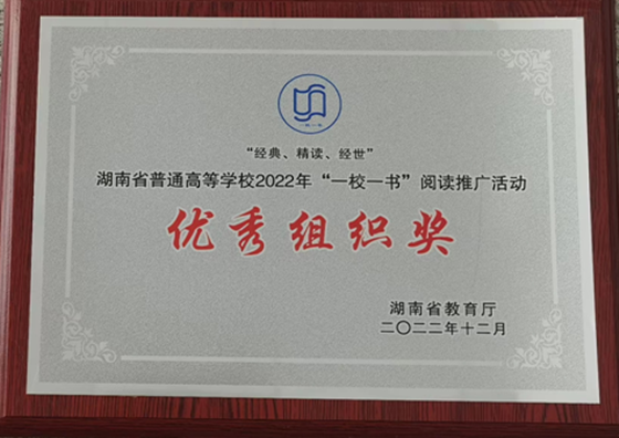 在总结表彰会上,MG冰球官网阅读推广活动荣获2022年度湖南省教育厅颁发的“优秀组织奖”,刘祖勤等10名同学获得一校一书“优秀心得奖”,周思妤同志荣获“优秀阅读推广人”奖。