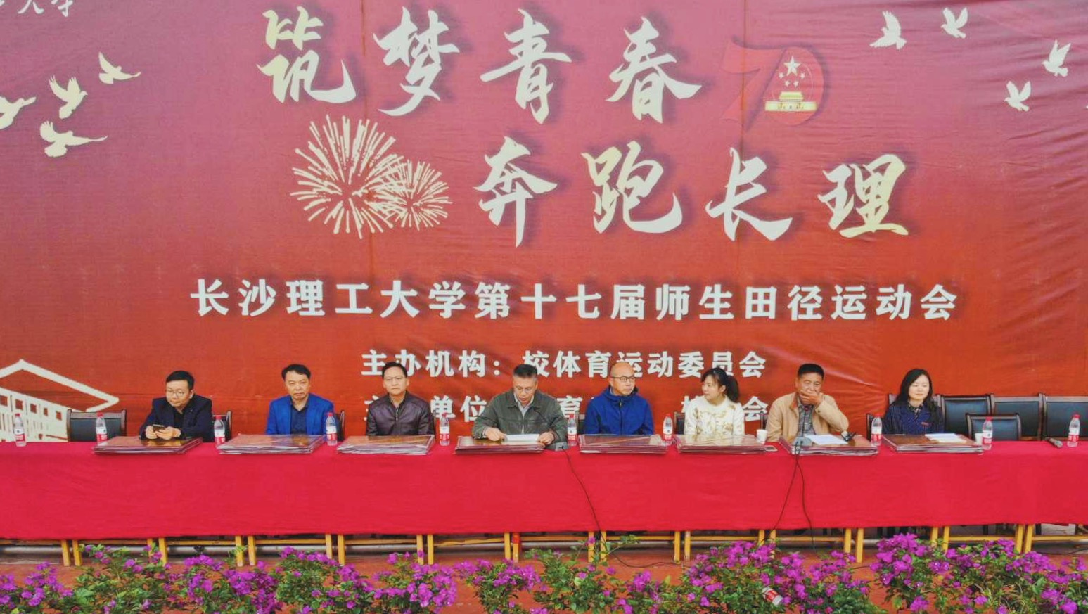 10月26日下午5时,历时两天精彩纷呈、激动人心的第十七届师生田径运动会落下帷幕,顺利完成了各项赛事。副校长蒋昌波、学校职能部门和学院负责人、赛事工作人员及广大学生和参赛运动员参加闭幕式。