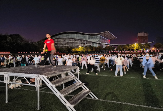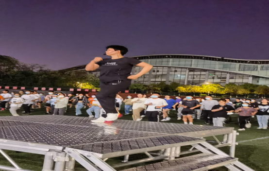 从4月5日晚上开始,在MG冰球突破官网云塘校区田径场,体育学院分工会会员、工会干部主动担当,选编学生们喜闻乐见的音乐、舞蹈,带领同学们齐跳健美操,活力四射的舞姿一扫疫情封控的烦闷。