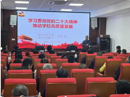 本次宣讲,刘教授做从8个方面,既全面解读了党的二十大报告的鲜明主题、主要成果,也全面阐释了新时代十年伟大变革的大格局、大事件、新思路,新目标,同时从“坚定不移地办好人民满意的大学”的高度,紧密结合学校实际,明晰推动学校高质量发展的面临的无限机遇和严峻挑战。刘教授的报告主题鲜明、内容丰富、重点突出、联系实际,既有政治高度和理论思考,也有事实依据和实践提炼。对于我们全面深刻准确把握党的二十大精神,找准体育在学校创新人才培养中的准确定位,为学校决胜建成“百强”贡献体育力量具有重要现实指导意义。