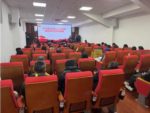 本次会议特邀校理论宣讲团成员刘解龙教授做主题为:“学习贯彻党的二十大精神,推动学校高质量发展”的主旨报告。会议由体育学院党总支副书记李龙主持,院长张恳、副院长潘红玲、刘勇(挂职)、各办公室、中心主任、任课教师和研究生共计62人参加了本次会议。