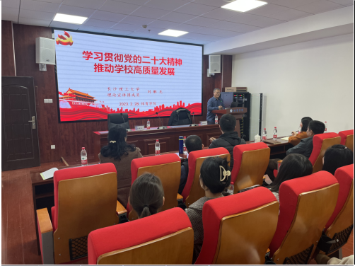 为深入学习宣传贯彻党的二十大精神,把思想统一到党的二十大精神上来,把力量凝聚到党的二十大确定的各项任务上来,积极营造学校学习宣传贯彻党的二十大精神的浓厚氛围,以党的二十大精神指导体育学院工作实际,根据省委有关文件精神,校党委印发的《关于认真学习宣传贯彻党的二十大精神的通知》,体育学院于2月28日14:30,在云塘体育馆A304召开了党的二十大精神宣讲活动。