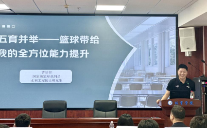 在校友经验分享环节,阳光组篮球冠军、现水利工程博士研究生、国家级篮球裁判员曹培智,结合自身经历讲述了体育精神在学术与职业发展中的价值与影响;田径百米冠军、现任中交机电局五公司总会计师吴亮,则围绕破除身份焦虑、平衡学业训练、科学规划发展等方面,为在校运动员提供了切实建议。