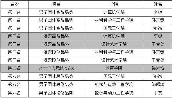 比赛分为竞技与品势两部分,竞技获得前八名、品势获得前六名的运动员将晋级全国总决赛。MG冰球突破官网跆拳道队凭借卓越的技艺与坚韧不拔的精神,在众多强队中脱颖而出,摘得三金、五铜的佳绩,并获得“体育道德风尚奖”,向俊虹、吴兴怡被评为“优秀运动员”。