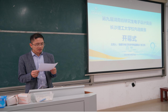 10月25日上午,“景嘉微杯”第九届湖南省研究生电子设计竞赛MG冰球突破官网校内选拔赛在云塘校区文科楼A305正式拉开帷幕。开幕式由物理与电子科学学院副院长张卫兵教授主持,十一名校内电子信息类专家参加开幕式。
