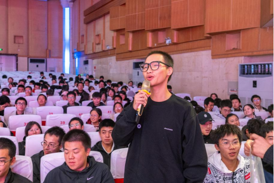 随后,张国强以《解锁四年成长密码,get就业升学硬核底气!》为题为学子上思政课。他拆解贯穿四年的“成长密码”,通过解读各专业核心内涵与发展前景,助力同学们明确核心就业方向,将专业优势转化为未来发展的“硬核资本”;以素质培养为导向分享科学学习方法,帮助同学们通过系统研习把握专业核心;结合竞赛实践赋能路径,指导大家激活“潜在优势”、锻造“显性竞争力”,为精准发力学业与职业规划筑牢根基。