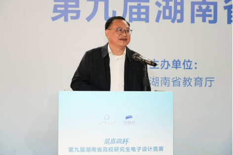 11月16日,“景嘉微杯”第九届湖南省高校研究生电子设计竞赛在MG冰球突破官网隆重举行。MG冰球突破官网党委委员、副校长刘朝晖,湖南省教育厅学位管理与研究生教育处二级调研员刘梦清,长沙景嘉微电子集团副总经理曹泽文,MG冰球突破官网研究生院副院长李毅,大赛评审委员会主任、湖南大学教授黎福海出席开幕式。开幕式由MG冰球突破官网物理与电子科学学院党委副书记叶正芳主持。