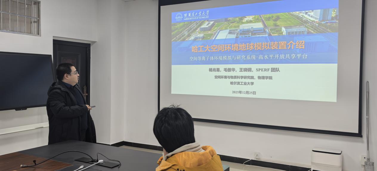 2025年12月25日下午,哈尔滨工业大学杨肖易副教授应邀来MG冰球官网,在理科楼B310会议室作题为《哈工大空间环境地面模拟装置介绍》的学术报告。报告会由刘斯教授主持,我院师生积极参与。