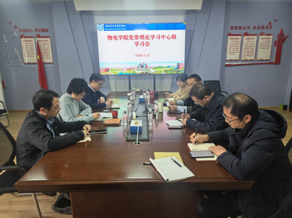 为深入贯彻落实学校树立和践行正确政绩观学习教育动员部署会暨2026年春季学期党政工作例会(扩大)精神,切实把全院上下思想和行动统一到学校党委决策部署上来,3月12日,物电学院党委理论学习中心组召开专题学习会,集中传达学习会议精神、研讨部署落实举措。学院党委书记张国强主持会议,学院党委理论学习中心组全体成员参会。