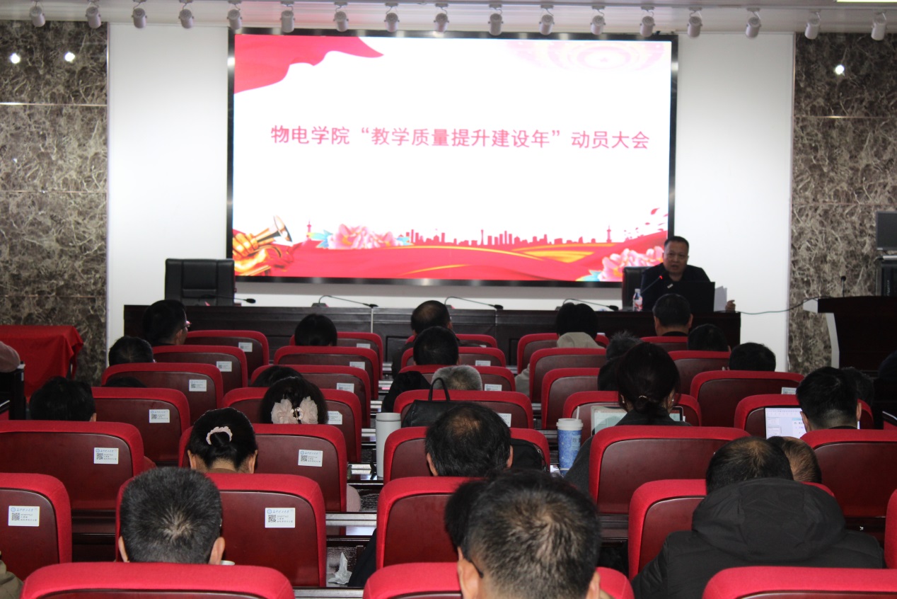 春启新程,满格出发。3月24日下午,物电学院召开了本学期第一次全院教职工大会暨“教学质量提升建设年”动员大会,全面部署本学期各项重点工作。教务处处长王威应邀出席会议并讲话,会议由党委书记张国强主持。