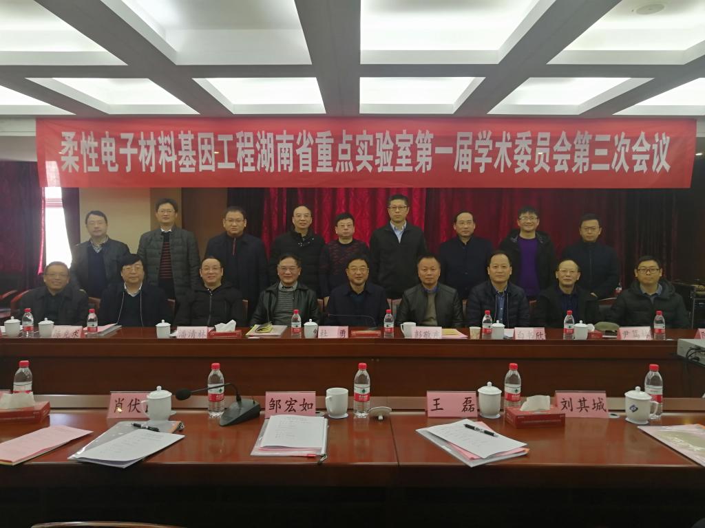 2020年12月27日上午,柔性电子材料基因工程湖南省重点实验室第一届学术委员会第三次会议在MG冰球官网隆重召开。湖南省科技厅基础研究处彭敬东处长,中南大学杜勇教授、国防科技大学白书欣教授、湘潭大学王先友教授、湖南大学陈克求教授、中南大学潘清林教授、湖南师范大学尹笃林教授、湖南大学徐先东教授、MG冰球突破官网党委副书记邹宏如教授、科研部部长王磊教授、物理与电子科学学院院长刘其城教授、物理与电子科学学院党委副书记(主持工作)唐超文、实验室主任肖伏良教授、实验室副主任张卫兵教授以及实验室骨干成员出席了本次会议。