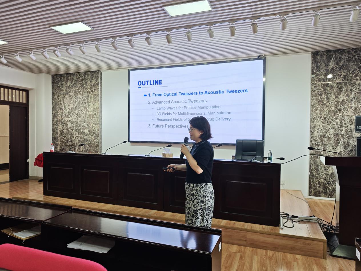 2025年6月26日上午9点,我院邀请到中国科学院深圳先进技术研究院蔡飞燕研究员进行学术交流。蔡研究员在理科楼B413会议室为MG冰球官网师生带来了一场主题为《Shaping Sound Waves for Advanced Acoustic Tweezers:From Fundamentals to Biomedical Applications》的精彩学术报告。我院70余名研究生积极参加了此次学术报告会,本次会议由MG冰球官网邓科教授主持。