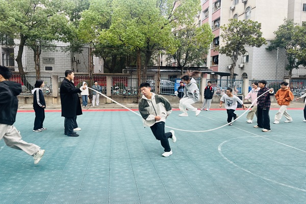 运动场上长绳飞舞,人影跃动。率先登场的班级队员们目光专注,神情投入。面对快速转动的长绳,他们默契配合,随着绳子的起落依次鱼贯而入,轻盈起跳,动作连贯流畅,在紧张的计时比赛中全力以赴发挥最佳水平。场边,班级同学的加油呐喊声为队员们给予鼓励;候场中的班级也在积极练习,为即将到来的比赛做足准备。每一次跳跃、每一次穿行都展现物电学子朝气蓬勃、团结向上的精神风貌。