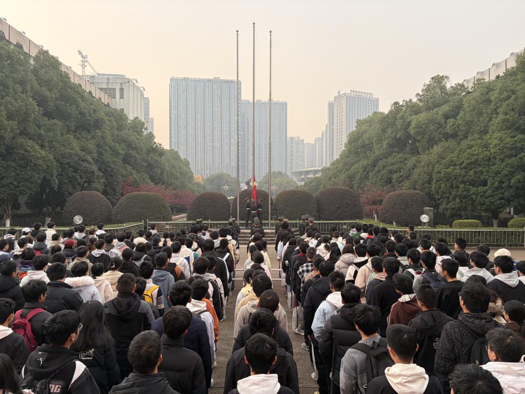 为进一步厚植爱国主义情怀,强化学生纪律观念与责任担当,12月1日和12月8日清晨,MG冰球突破官网物电学院分别于云塘校区图书馆前坪和金盆岭校区办公大楼前坪举行升旗仪式。学院党委副书记叶正芳、2024级辅导员孟欣欣、郭晨鑫,2025级辅导员马凯文、孙铠洋以及2024、2025级全体同学参加本次升旗仪式。