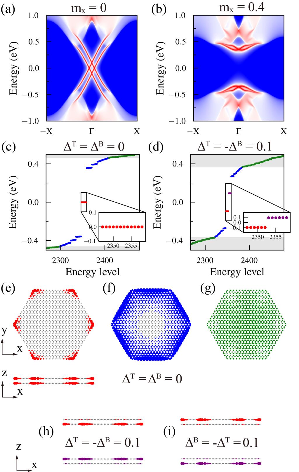 图1 双层修饰的Kane-Mele模型的半无限平面和纳米片性质