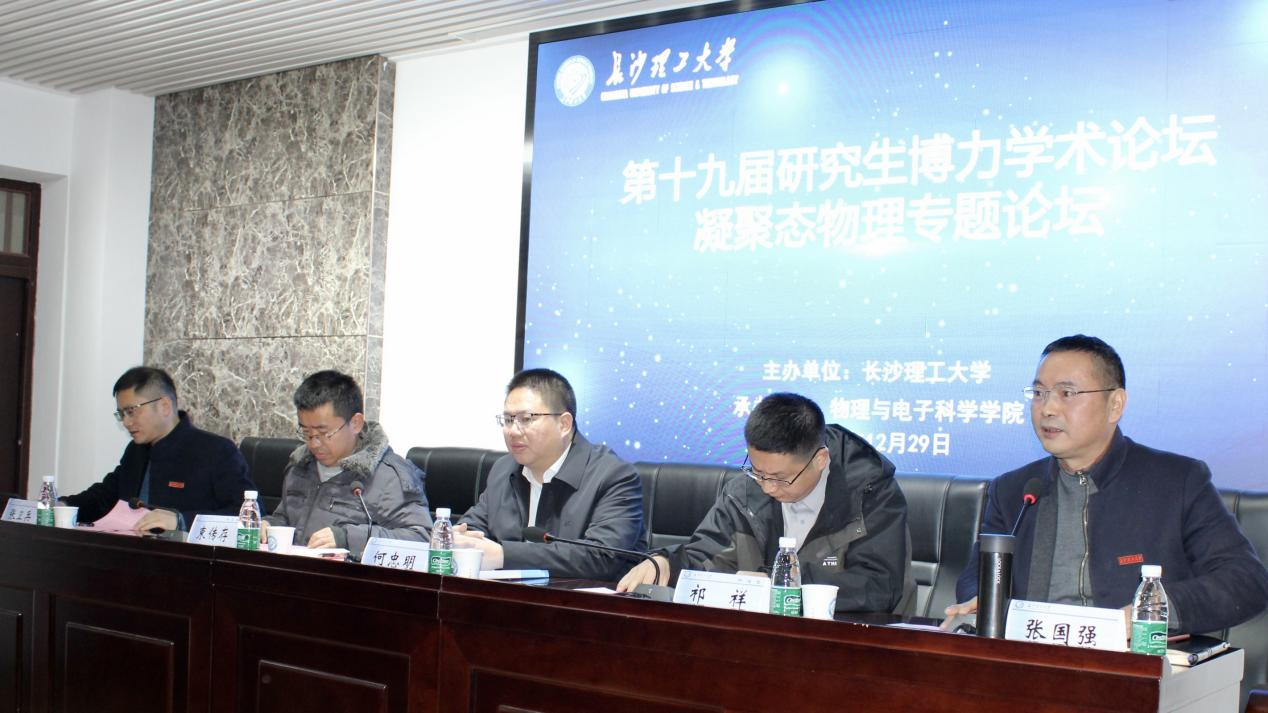 开幕式结束后,正式开始“凝聚态物理”专题论坛学术报告,报告主会场分两部分,第一部分由张卫兵教授主持,中南大学束传存教授、湘潭大学祁祥教授、MG冰球突破官网范志强教授为论坛作特邀报告;第二部分由祁祥教授主持,MG冰球突破官网曾波文博士、湖南师范大学欧阳钢教授为论坛作特邀报告。