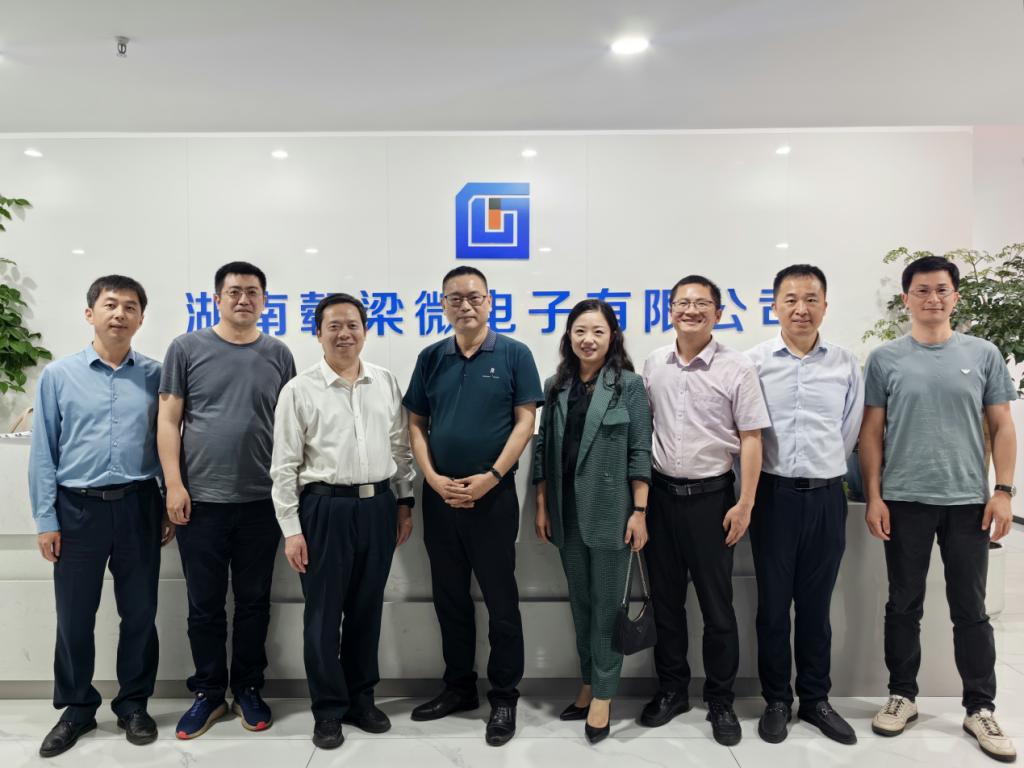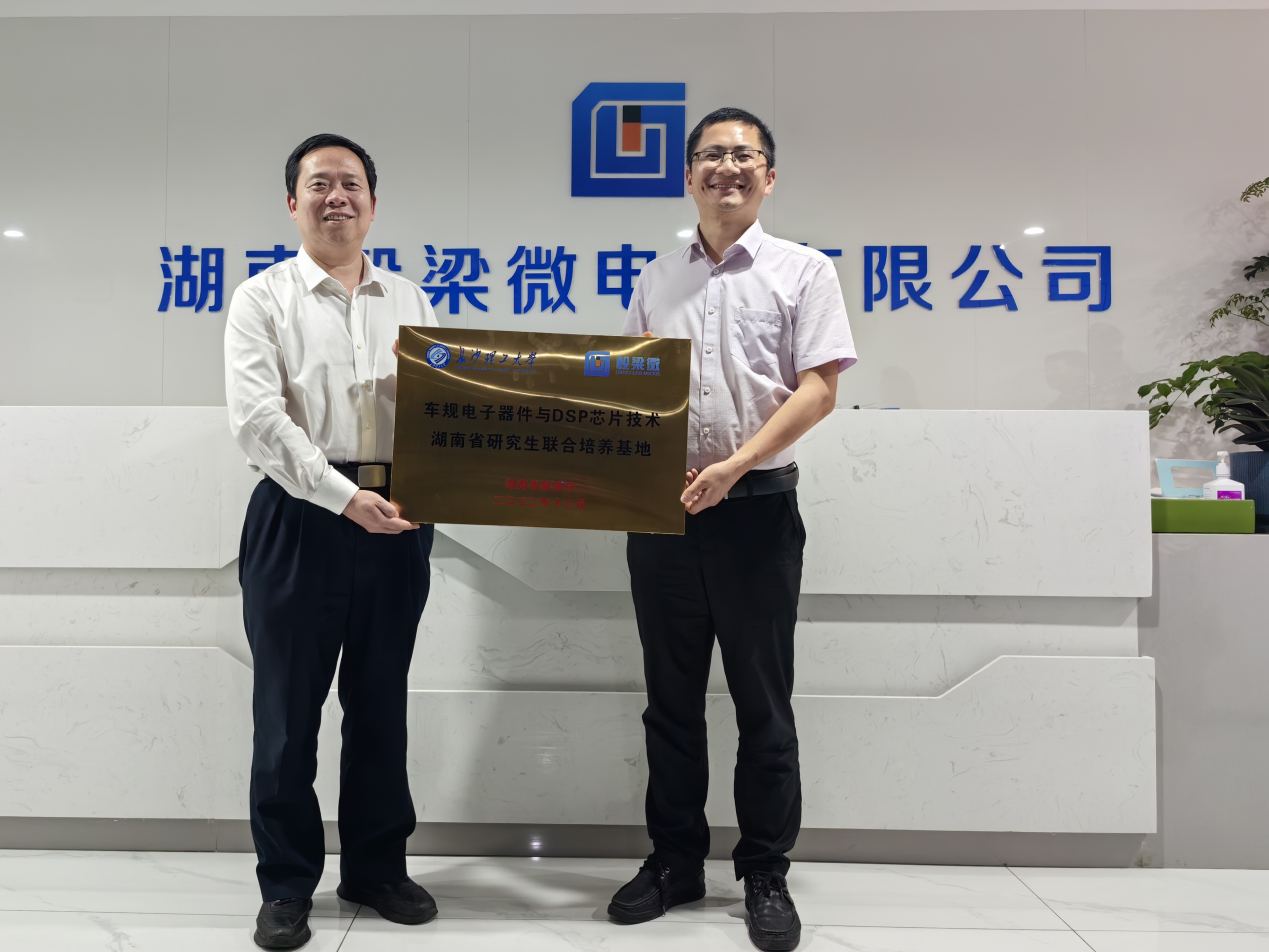 2023年5月25日下午,MG冰球突破官网研究生院副院长(研工部部长)闾兰、物理与电子科学学院党委书记张国强、副院长(主持工作)张卫兵、电子信息系主任邹望辉一行前往湖南毂梁微电子有限公司调研研究生联合培养情况,并举行了车规电子器件与DSP芯片技术湖南省研究生联合培养基地授牌仪式。湖南毂梁微电子有限公司副总经理杨一艺、汪东、陈虎、首席科学家李振涛等公司负责人出席相关活动。