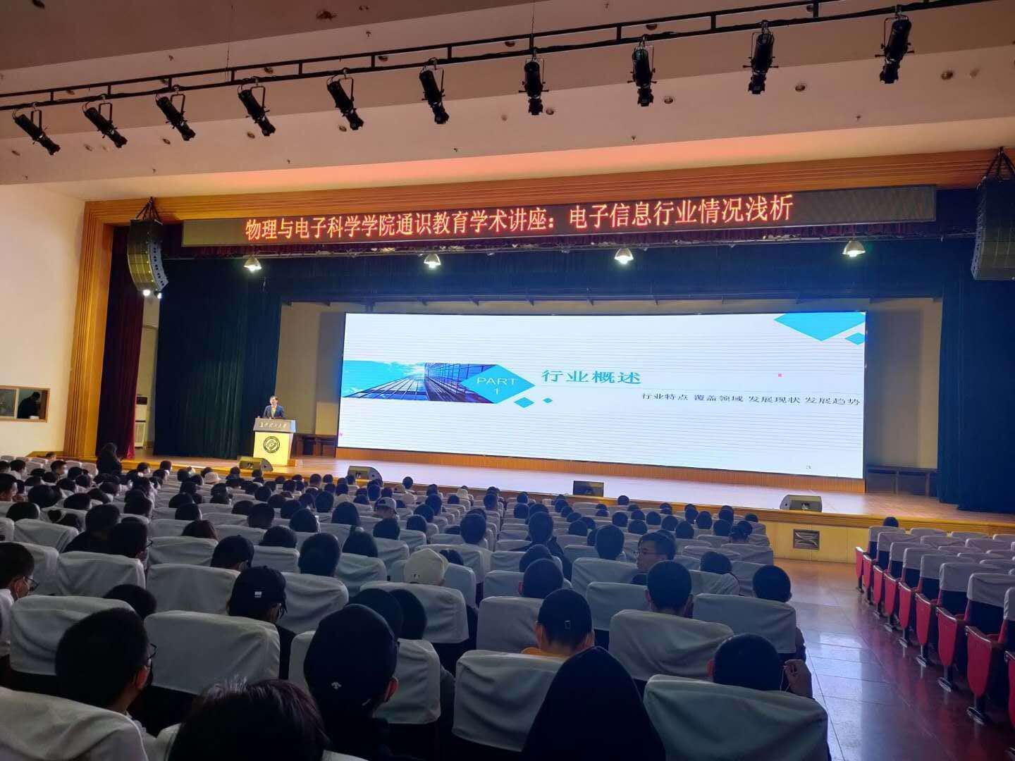 10月21日下午四点,物电学院研究生入学教育之职业导师专题讲座第二场“电子行业情况浅析”在金盆岭校区五教报告厅举行。本次主讲嘉宾为威胜集团有限公司人力资源部HRBP经理兼校企合作经理、长沙市电子电工教研会副理事长彭健。讲座由物电学院副院长刘新海主持,全体研究生参加。