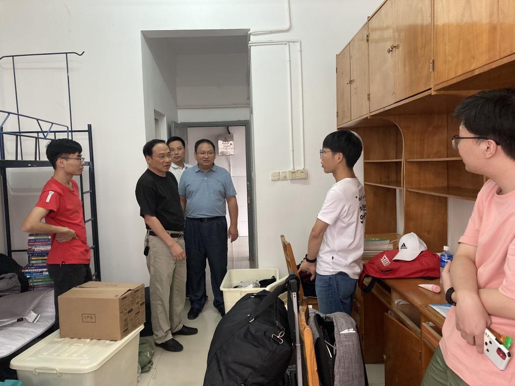 下午,刘其城、唐超文、李灵均在研究生辅导员蒋琳嫒的陪同下,深入每一间研究生新生宿舍看望新生,与新生们亲切交流,询问新生来自哪里、本科毕业于哪所院校,生活上有没有什么困难等,表达了学院对新生未来学习生活的关心并寄予厚望,勉励他们尽快适应新环境,进入良好的学习状态。